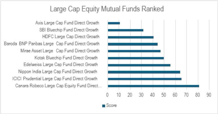 Based on these weights we have scored them and assigned them ranks. The ranks suggest that Canara Robeco Large Cap is the best performer in the category based on the given metrics followed by ICICI Prudential Large Cap and Nippon India Large Cap funds.