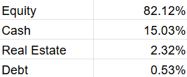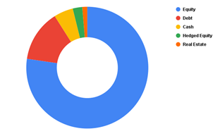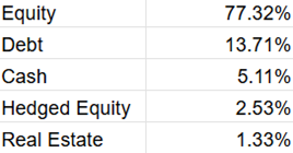 - Holdings are highly diversified with domestic and foreign equities, REITs, certificate of deposits, commercial papers, T-Bills, Partly Paid Equity shares, futures, call options and a tiny amount (.45%) in its own liquid fund.